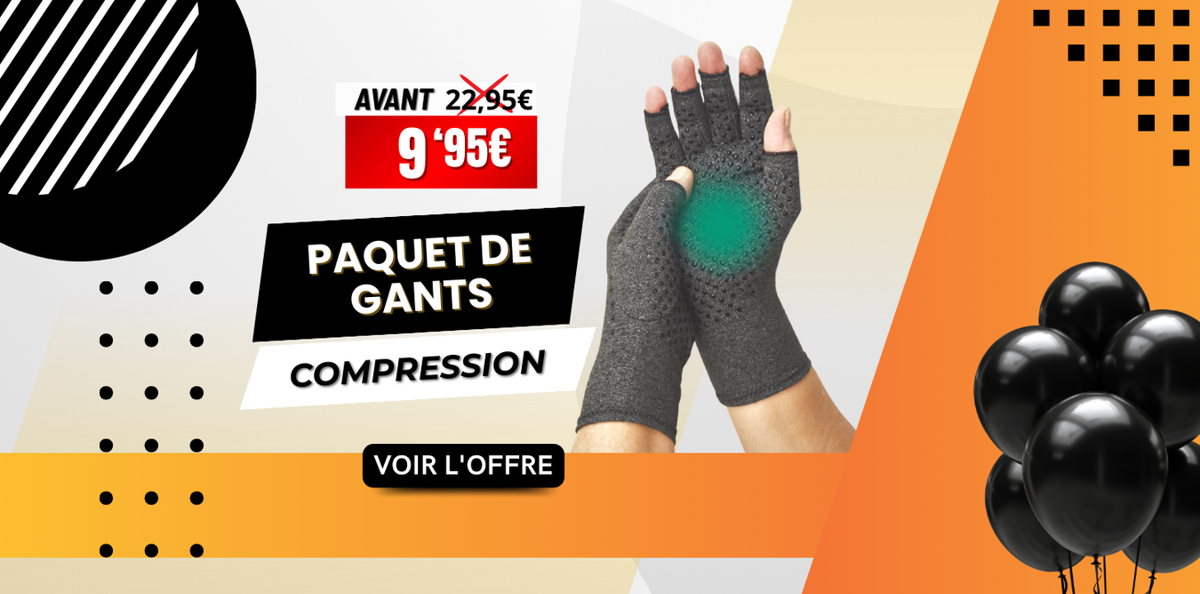 Prix d'origine 22,95€Prix actuel 9,95€Pack de Gants de Compression Arthrite et Arthrose
