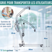 CONFORT ET STABILITÉ : Lève-personnes de 108 cm de longueur et 60 cm de largeur, ouverture des pieds jusqu’à 100 cm. Démontable en 2 parties et pliable sans outils, adapté aux transferts hospitaliers, à domicile et en établissements pour personnes âgées.