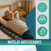 FIXATION SÉCURISÉE : Le matelas anti-escarres comprend des bandes ajustables aux coins pour fixer le matelas et éviter tout déplacement durant l'utilisation.