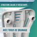 - HIGIÉNIQUE: Dotée de trous sur toute sa surface qui facilitent le drainage pour plus de confort lors du bain, aussi bien pour le soignant que pour l'utilisateur, évitant l'accumulation d'eau.